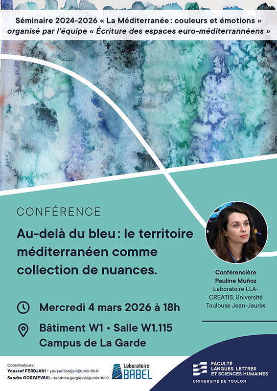 Séminaire 2024-2026 « La Méditerranée : couleurs et émotions » organisé par l’équipe Écriture des espaces euro-méditerranéens du Laboratoire Babel