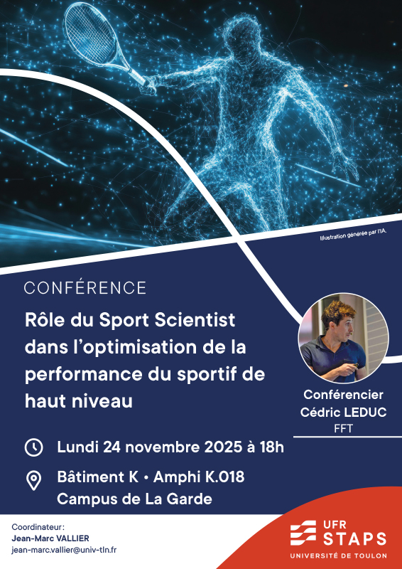 L’UFR STAPS vous propose une conférence sur le thème "Rôle du Sport Scientist dans l’optimisation de la performance du sportif de haut niveau".