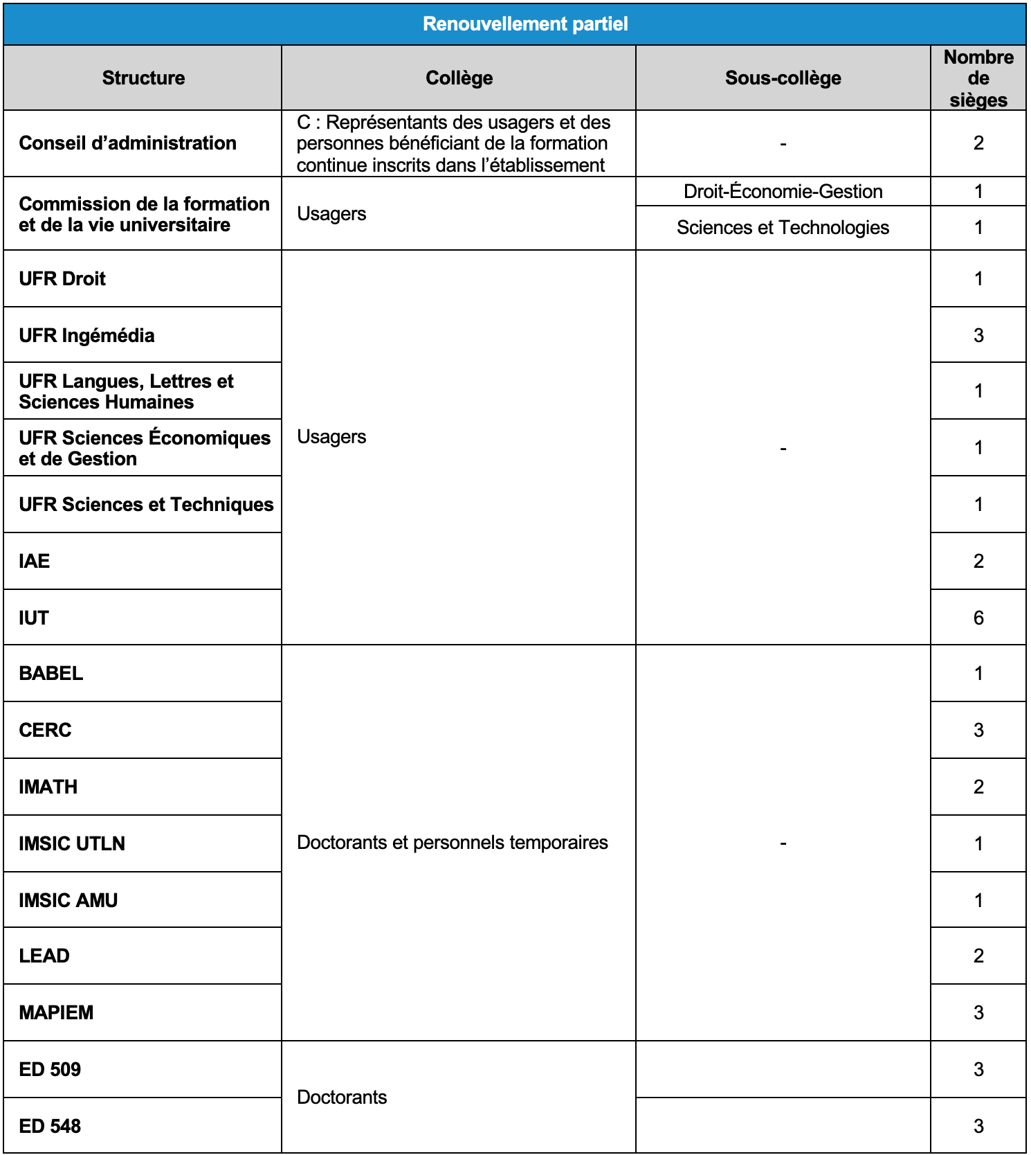 - Conseils centraux : Tous les étudiants inscrits en formation initiale ou continue en 2025/2026 à l’université de Toulon.