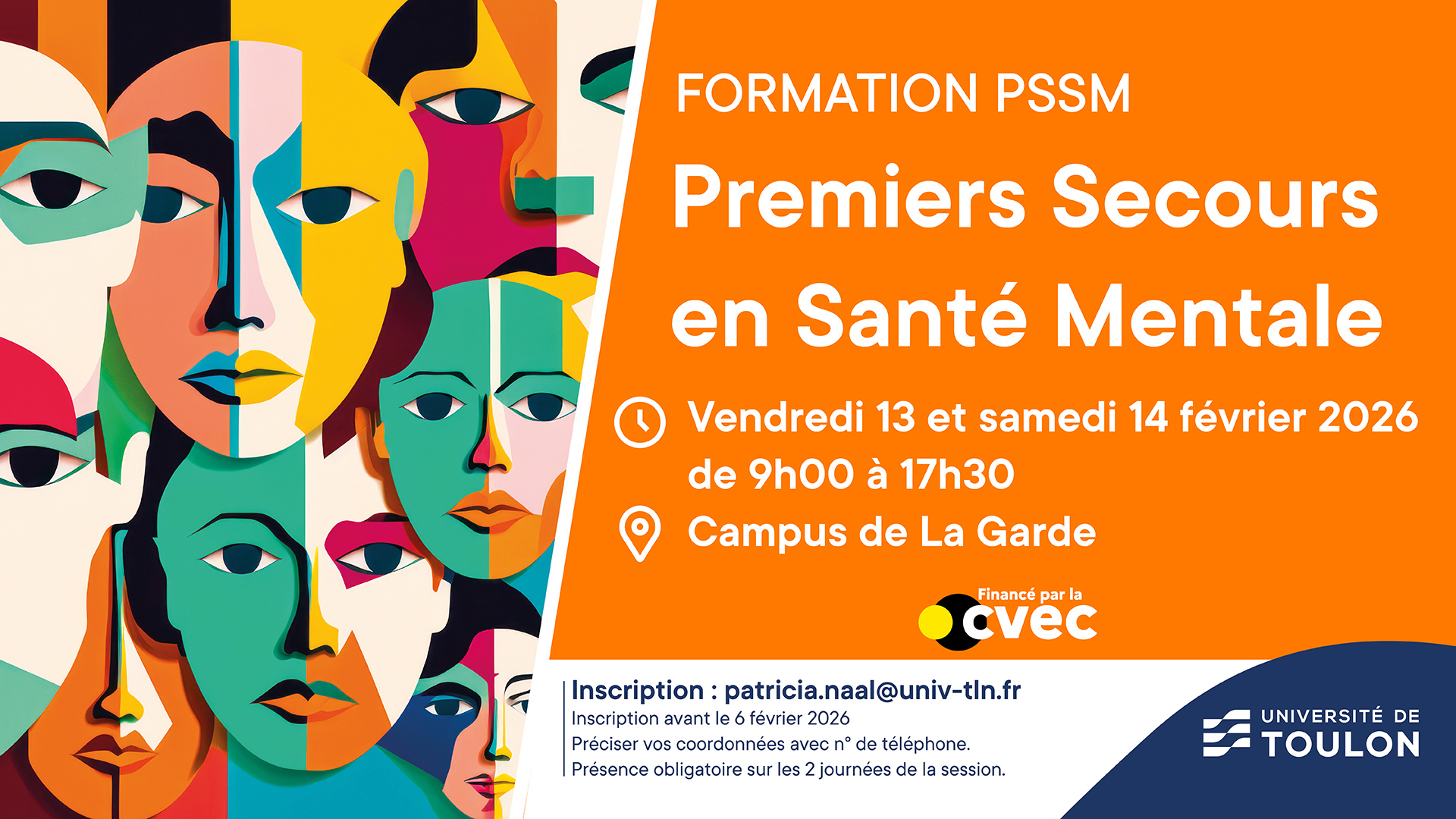 Le Service de Santé Étudiante vous informe qu’une nouvelle formation Premiers secours en santé mentale (PSSM) vous est proposée les Vendredi 13 et samedi 14 février 2026.