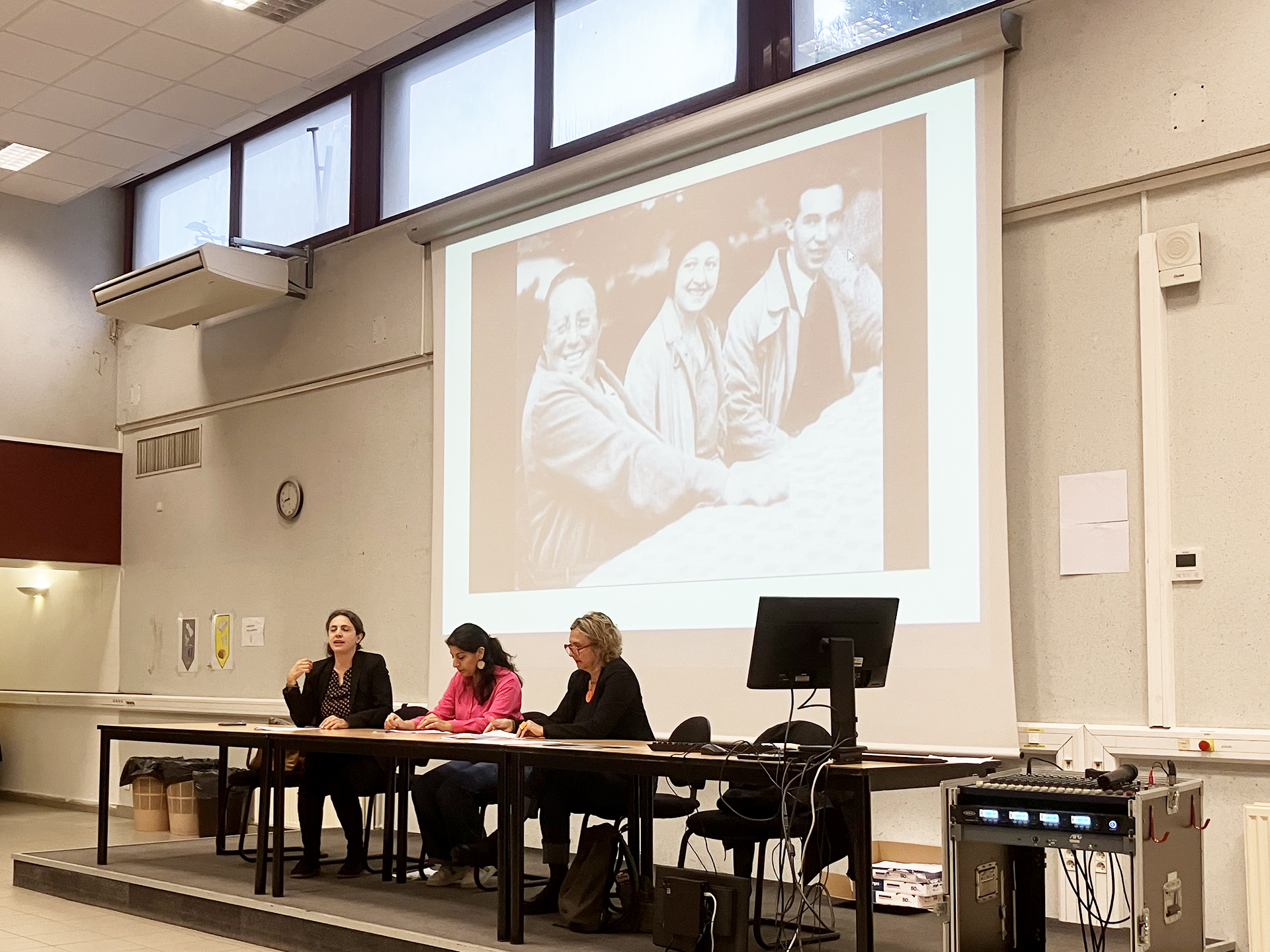 Parallèlement, Annalisa Panati enseignante-chercheuse au CPT, secondée par Valérie Gillot (IMATH) et Perla El Kettani (CPT), ont présenté la pièce théâtrale « Emmy s’en moque », une évocation artistique et pédagogique de la vie et de l’œuvre d’Emmy Noether, mathématicienne d’exception.