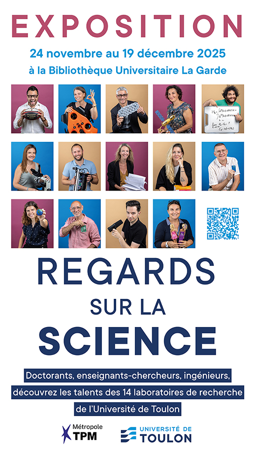Ce travail s’est concrétisé sous la forme d’une exposition de portraits réalisés par le photographe Yves Colas. Il est accompagné d’interviews de chaque collègue qui vous permettront de découvrir une recherche vivante, connectée aux enjeux de son temps, ancrée dans un territoire ouvert sur la Méditerranée et le monde. Ces voix multiples dessinent un paysage riche, où l’interdisciplinarité, l’innovation et l’engagement intellectuel occupent une place centrale.